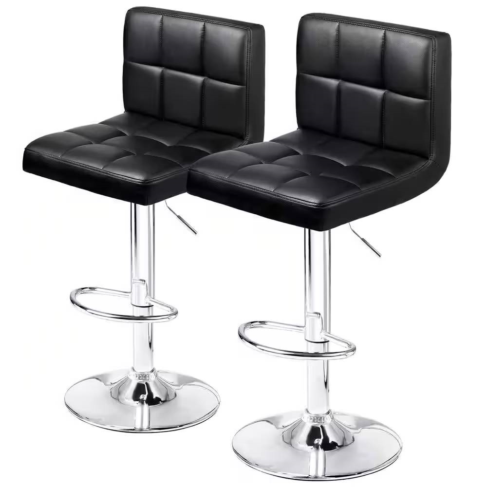 This Set of 2- Black Faux Leather Barstool with Low Back Swivel Seat has a height adjustment feature so you can adjust it to the most comfortable height for your bar. It also comes with a footrest and has a 360° swivel function so you can relax your body. The seat cushion is made of padded foam cushion and faux leather, which is soft and comfortable, just like sitting on a sofa. The premium feel of the bar stool allows it to handle a variety of home styles, enhancing the style of dining rooms, bedrooms and living rooms. The silver base makes the bar stool stylish and elegant. Uniquely designed, ergonomically curved backrest provides lumbar support and reduces back pressure, so you won't get tired after sitting for a long time.