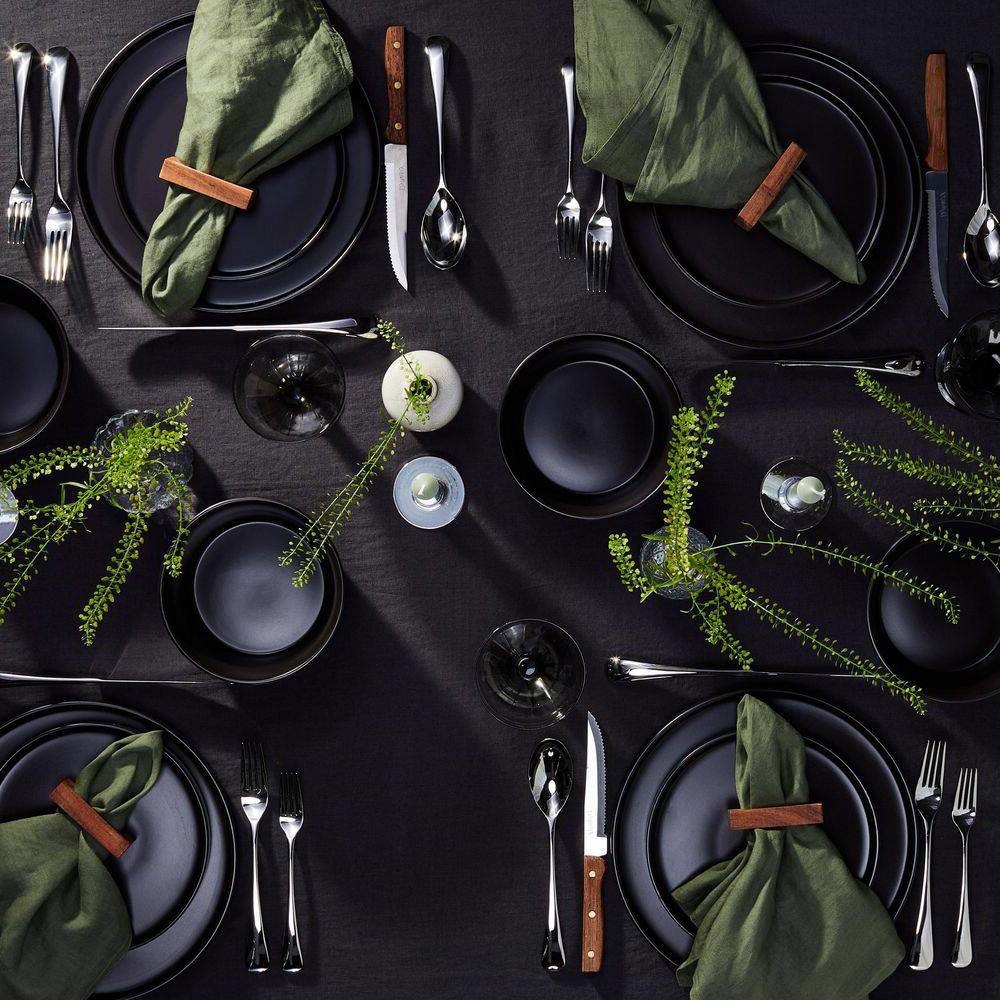 • 16 Piece dinnerware set - stoneware is hip, cool and trendy. Especially in a fashionable Black Matte. These sets of dishes make a statement.
