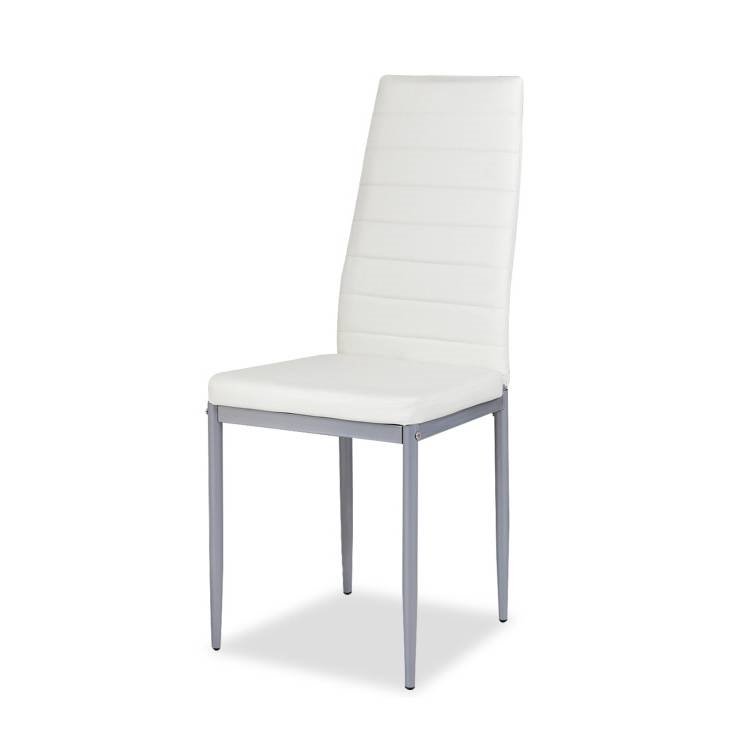 • Set of 4 Modern High Back White PVC Leather Dining Chairs with Metal Legs