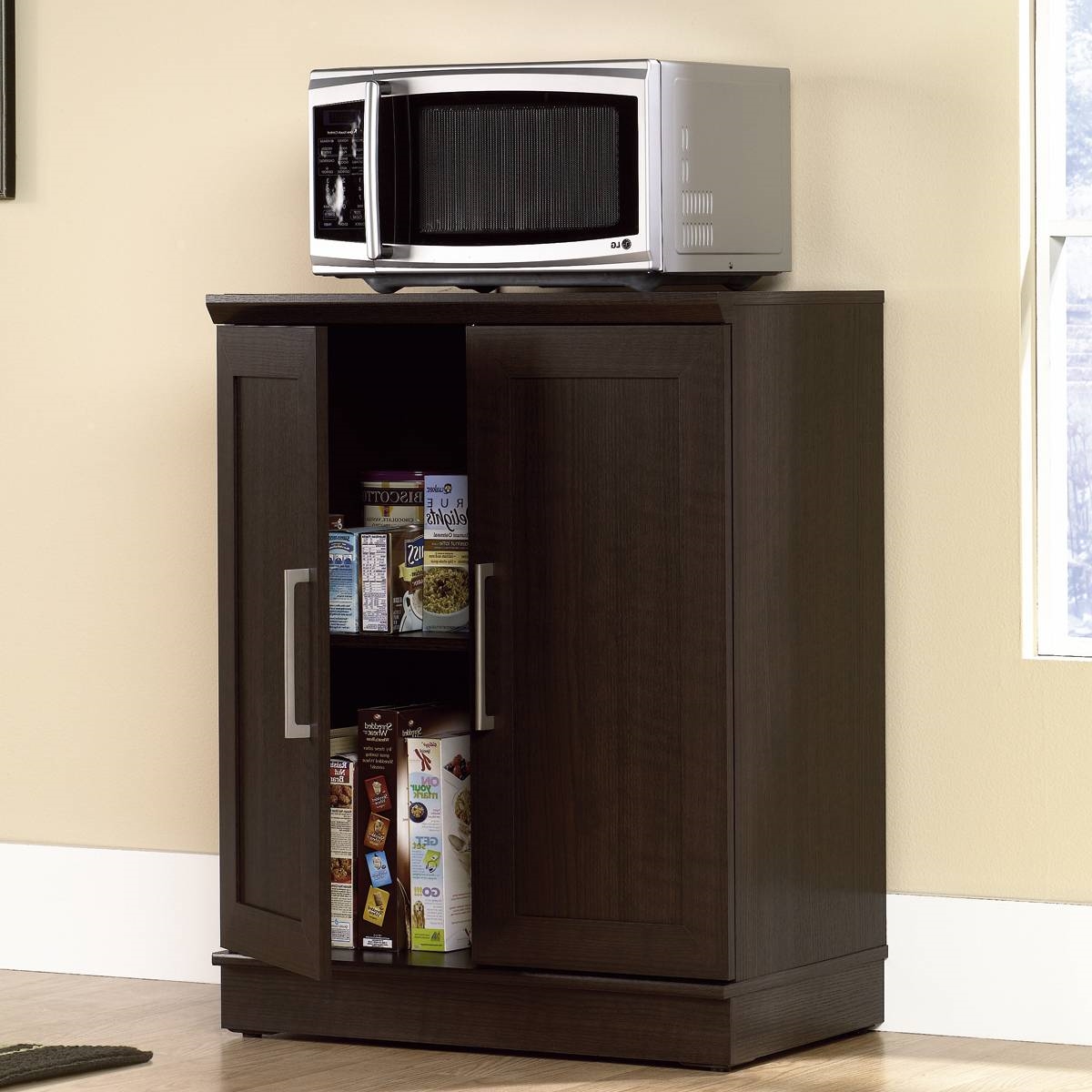 Contemporary Kitchen Storage Microwave Cabinet in Dark Oak